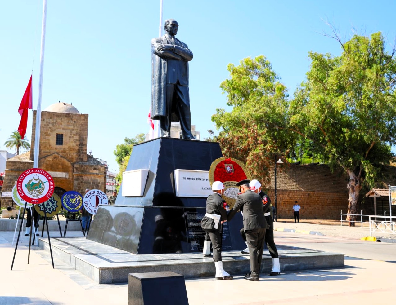 Atatürk Anıtı’ndaki törende günün anlam ve önemine ilişkin bir konuşma yapan Kurmay Yüzbaşı Nusret Demircan, Kıbrıs Adası’nın Osmanlı İmparatorluğu tarafından fethinin 454’üncü, Türk Mukavemet Teşkilatı’nın (TMT) 67’nci ve Güvenlik Kuvvetleri Komutanlığı’nın (GKK) 49’uncu kuruluş yıl dönümünü aynı günde kutlamanın mutluluğunu yaşadıklarını söyledi.
