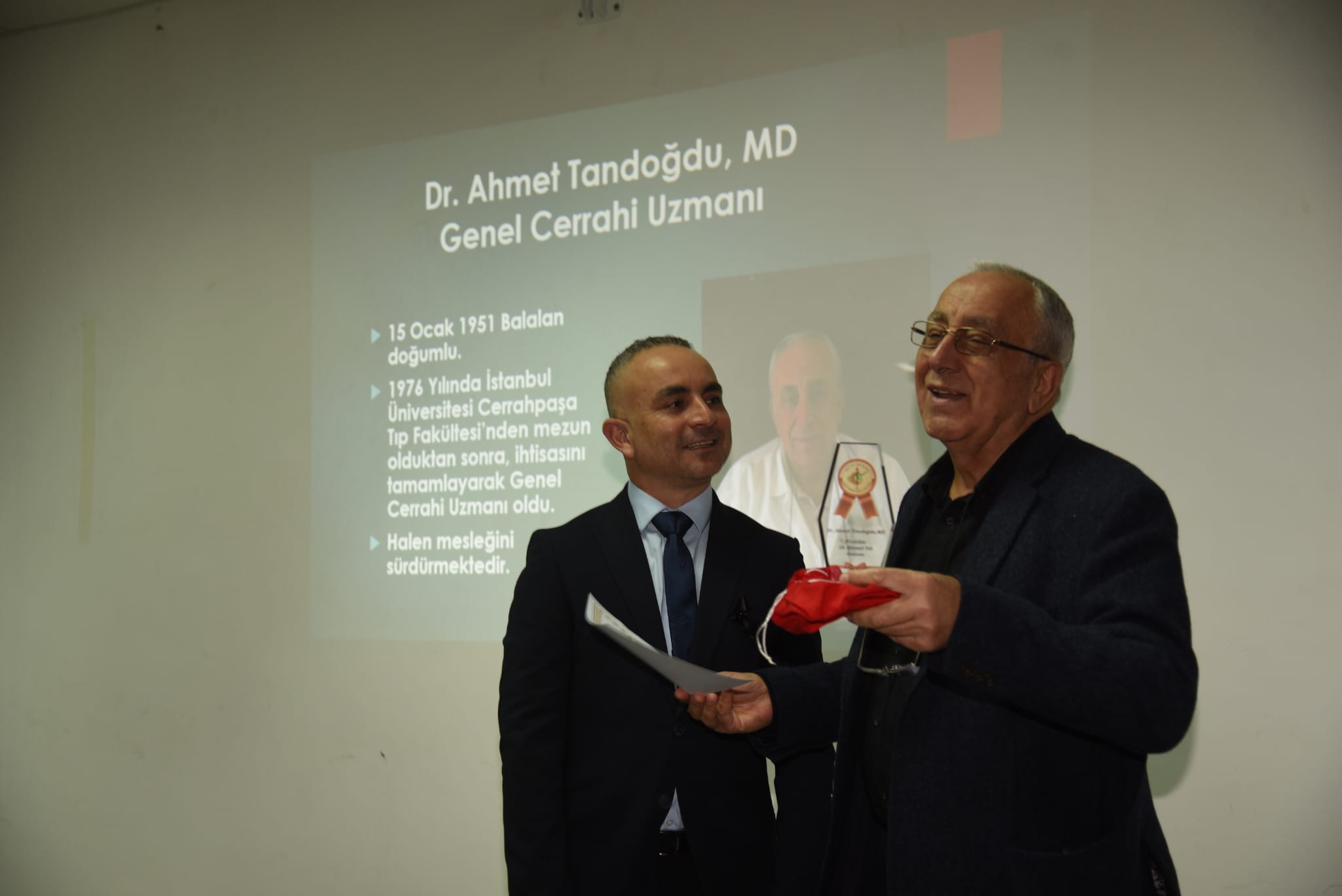“Meslekte 50. Hizmet Yılını Dolduran” hekimler ile “Meslekte 25. Hizmet Yılını Dolduran” hekimlere plaket ve onur belgesi sunuldu. Tören, anı fotoğrafı çekimi ve kokteylle tamamlandı.