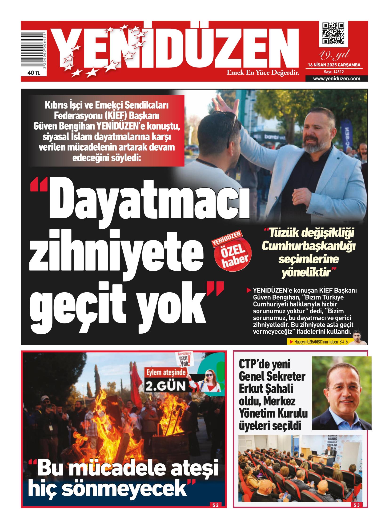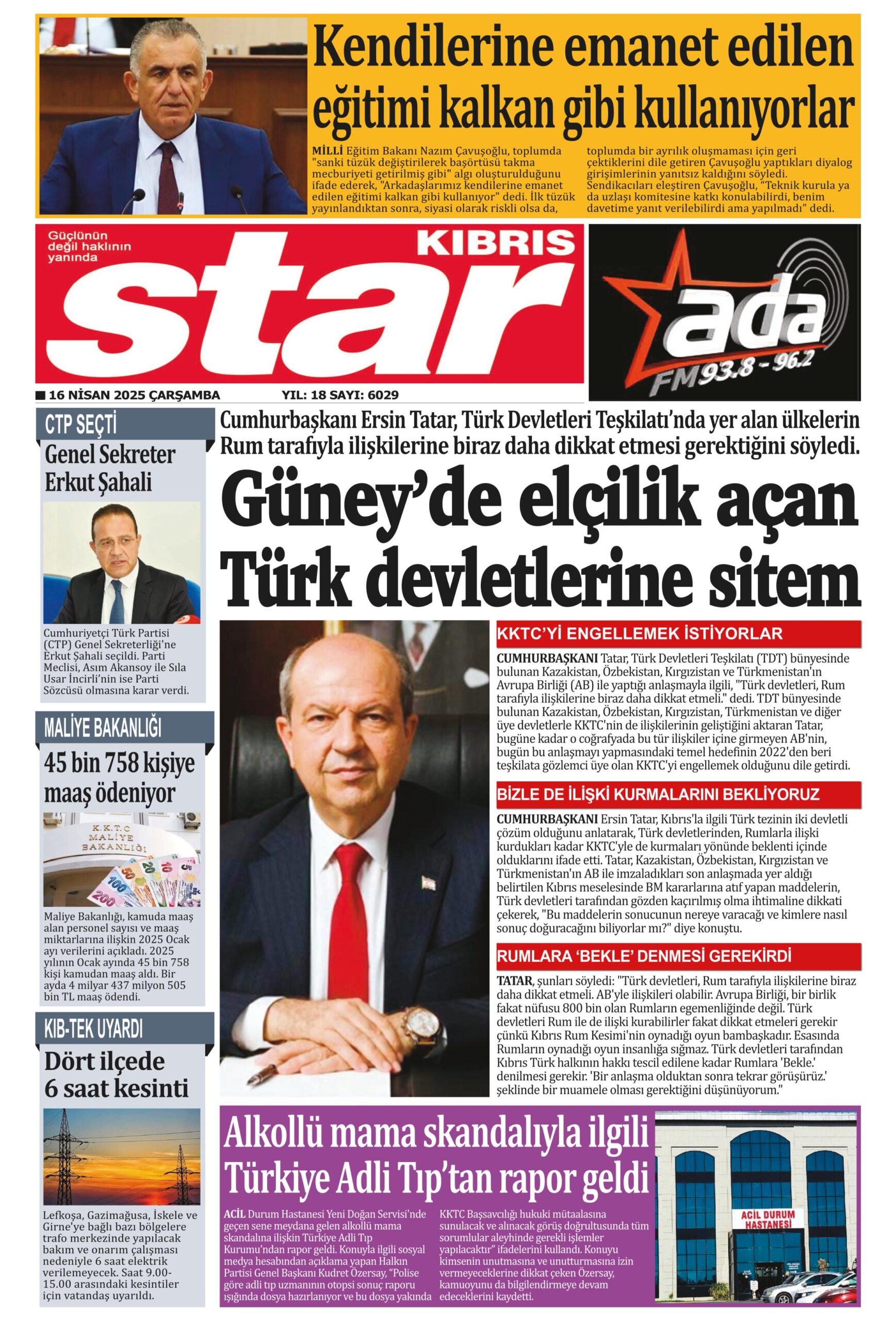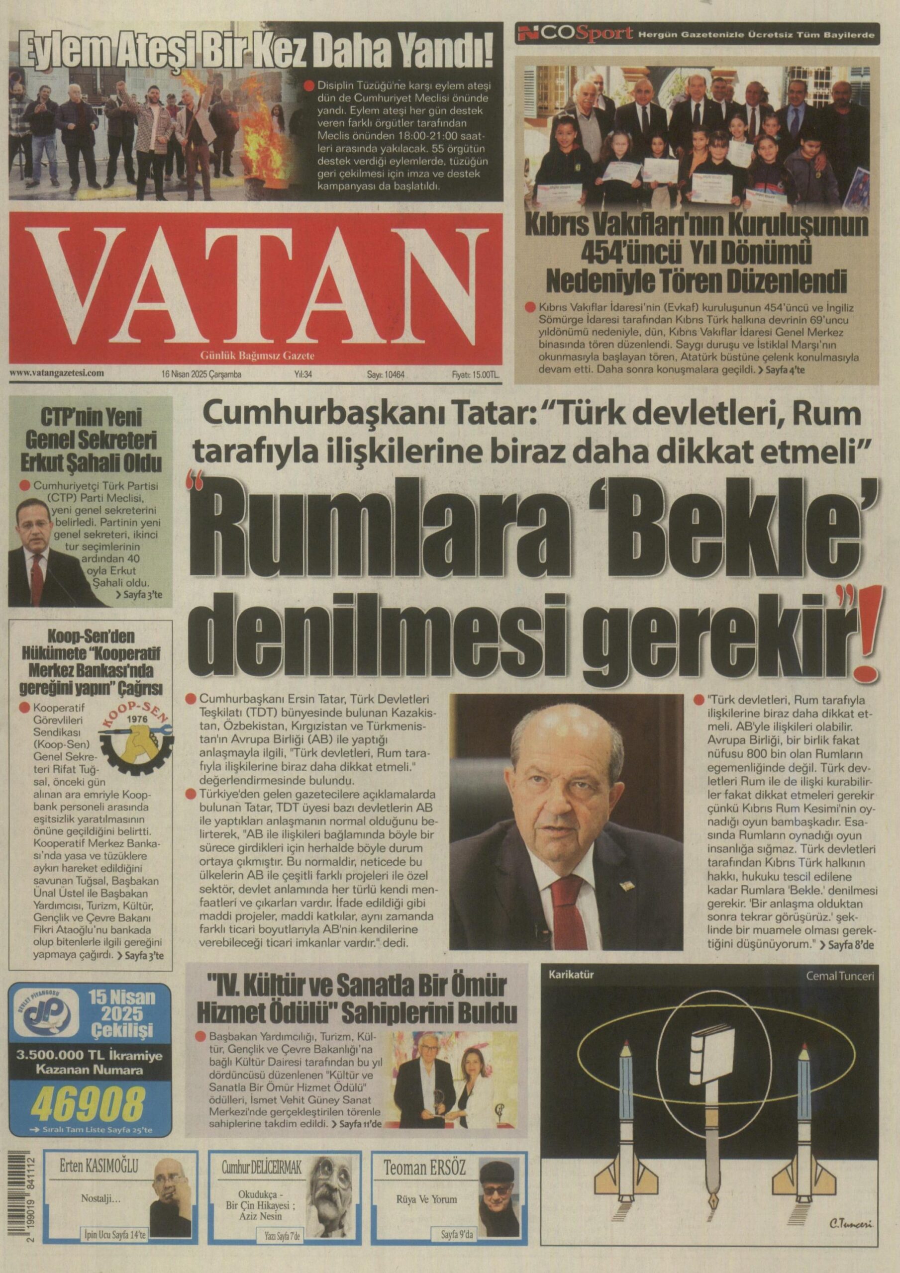 16 Nisan 2025 Çarşamba KKTC Gazete Manşetleri