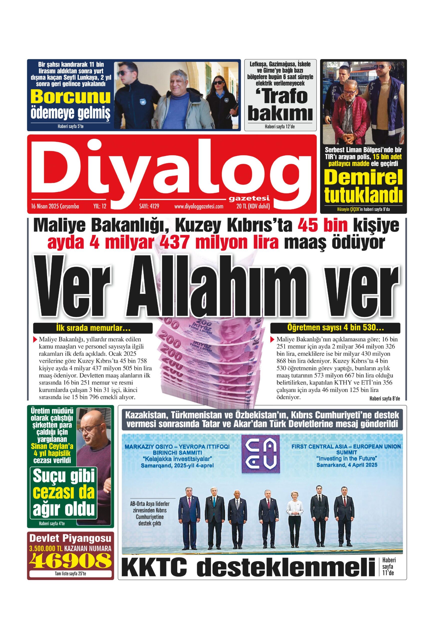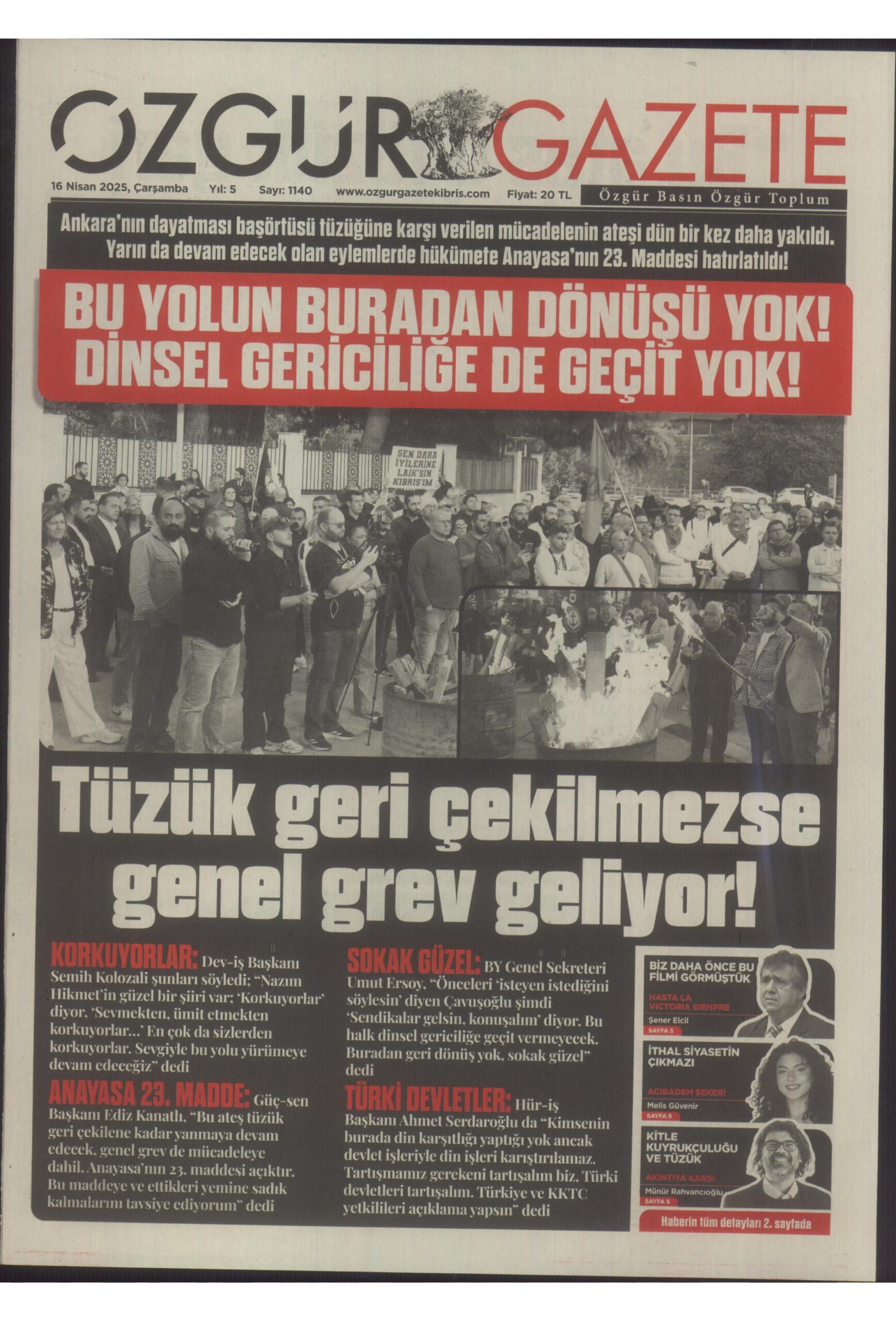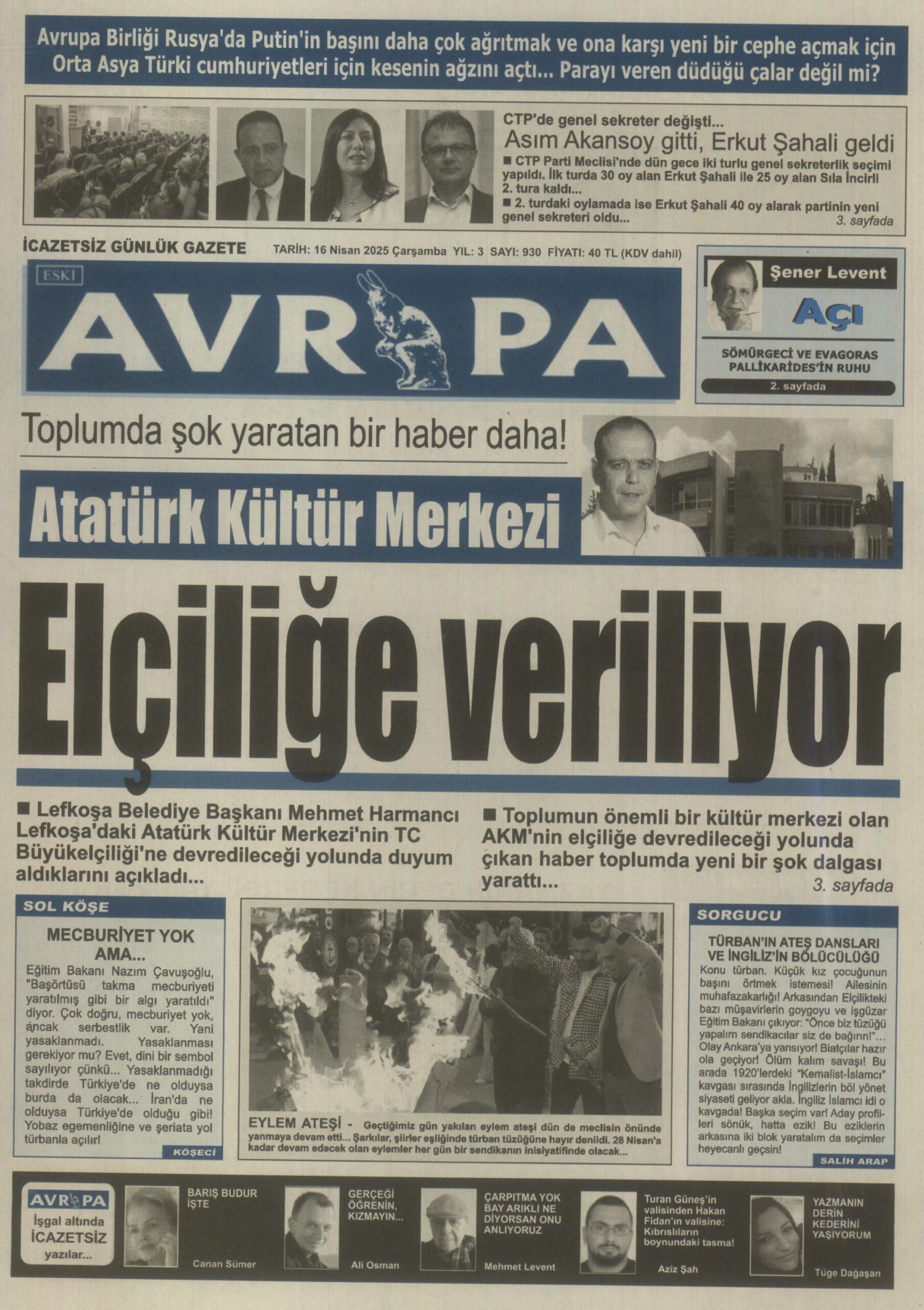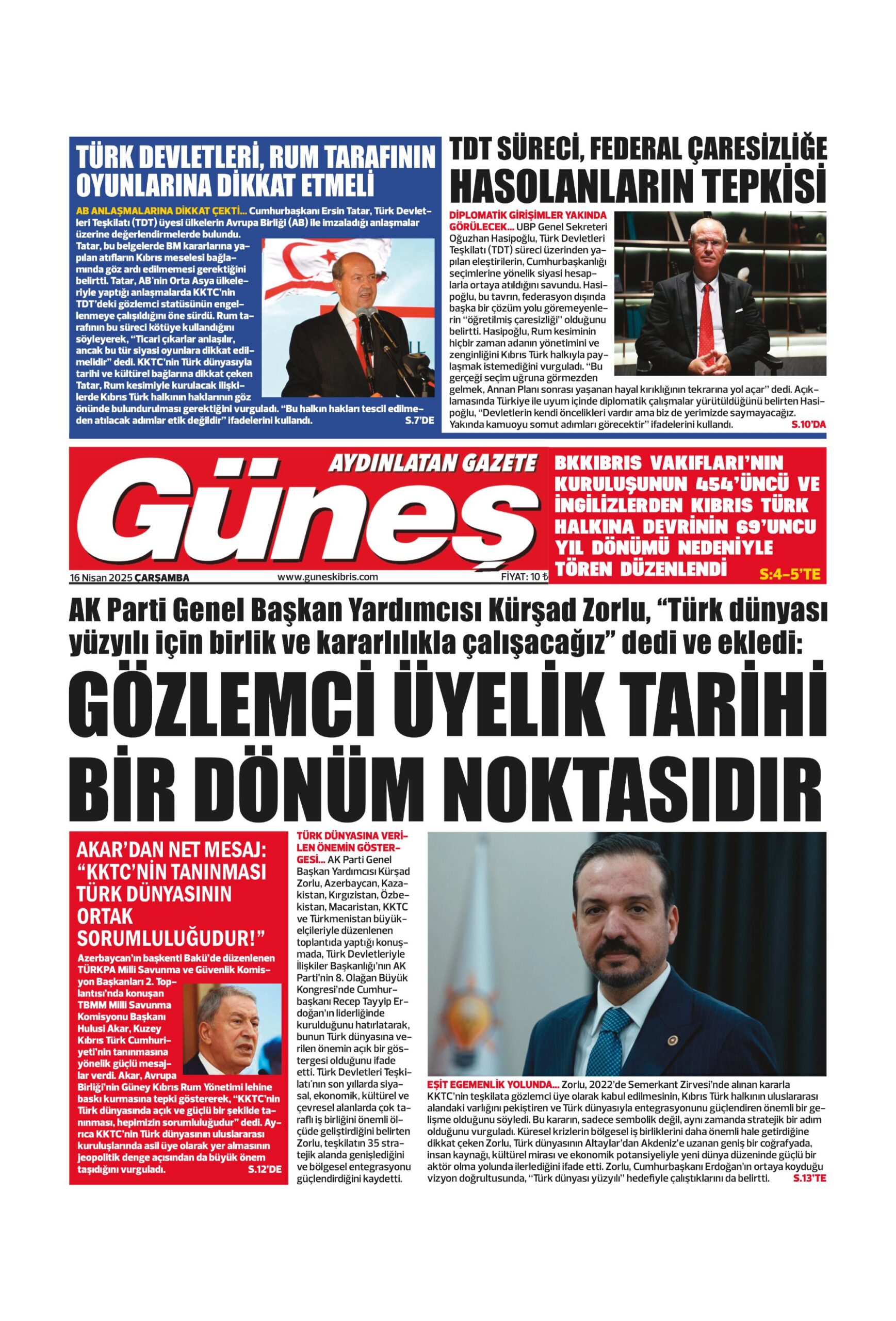 16 Nisan 2025 Çarşamba KKTC Gazete Manşetleri