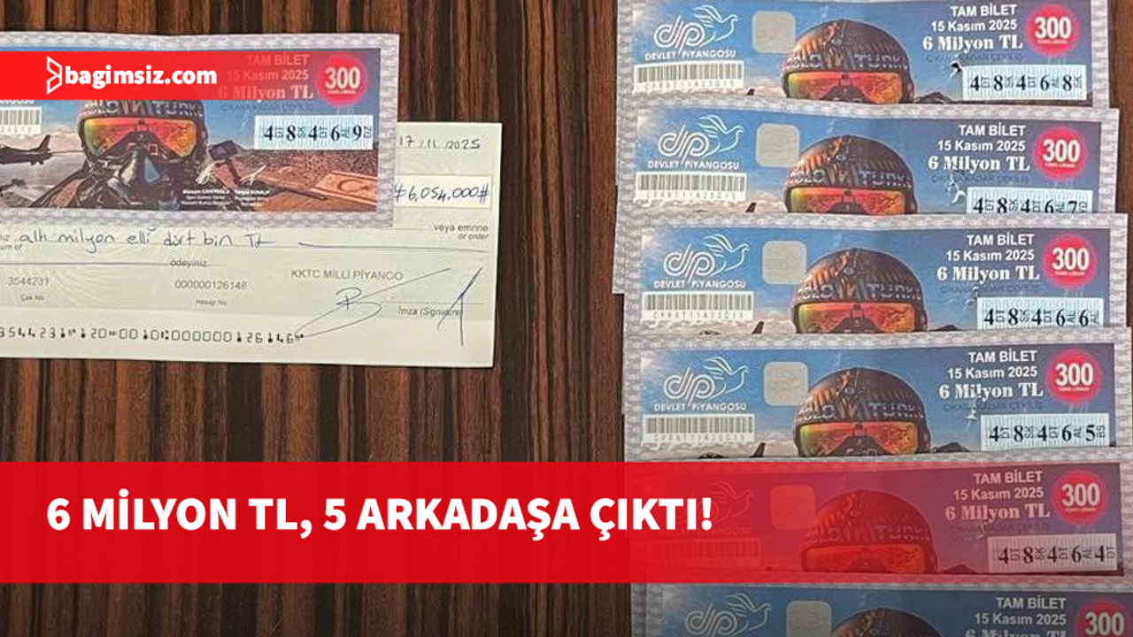 Birimden yapılan açıklamada, 15 Kasım 2025 gecesi yapılan özel çekilişte 6 Milyon TL’lik büyük ikramiyenin 9 teselli ile birlikte; Lefkoşa’da yaşayan beş arkadaşın ortak aldığı biletlere çıktığı bilgisi verildi.
