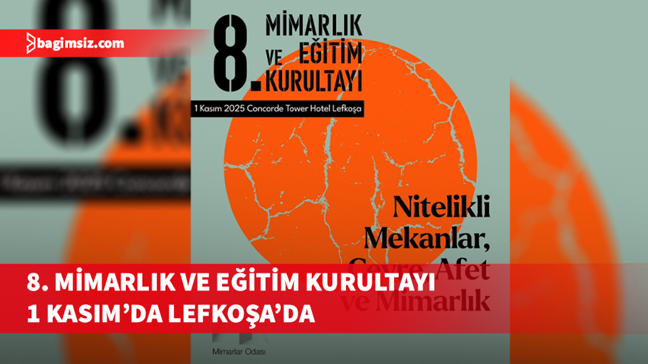 Kıbrıs Türk Mühendis ve Mimar Odaları Birliği’ne (KTMMOB) bağlı Mimarlar Odası'nın 8. Mimarlık ve Eğitim Kurultayı, “Nitelikli Mekanlar, Çevre Afet ve Mimarlık” temasıyla 1 Kasım Cumartesi günü Lefkoşa Concorde Otel’de yapılacak.