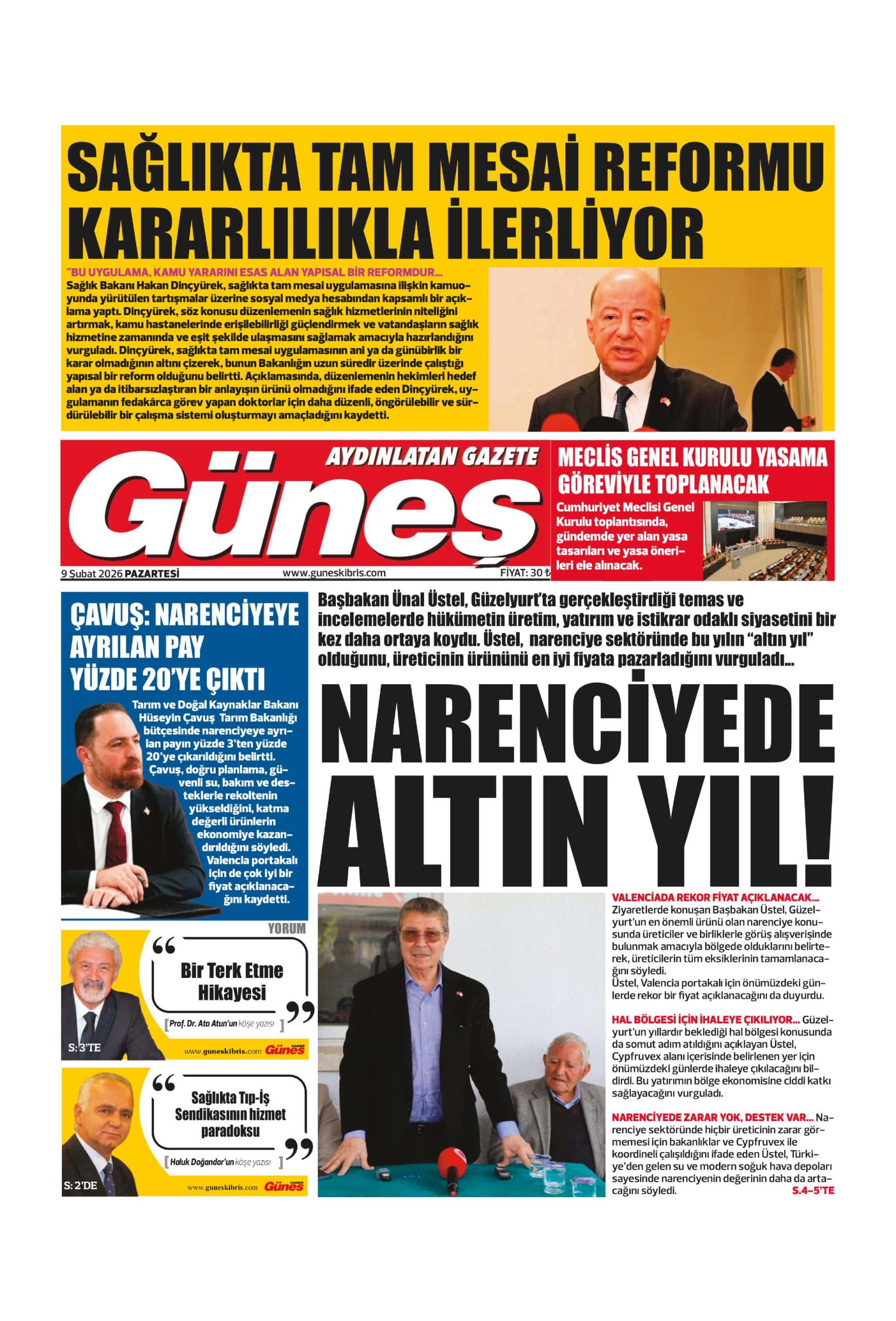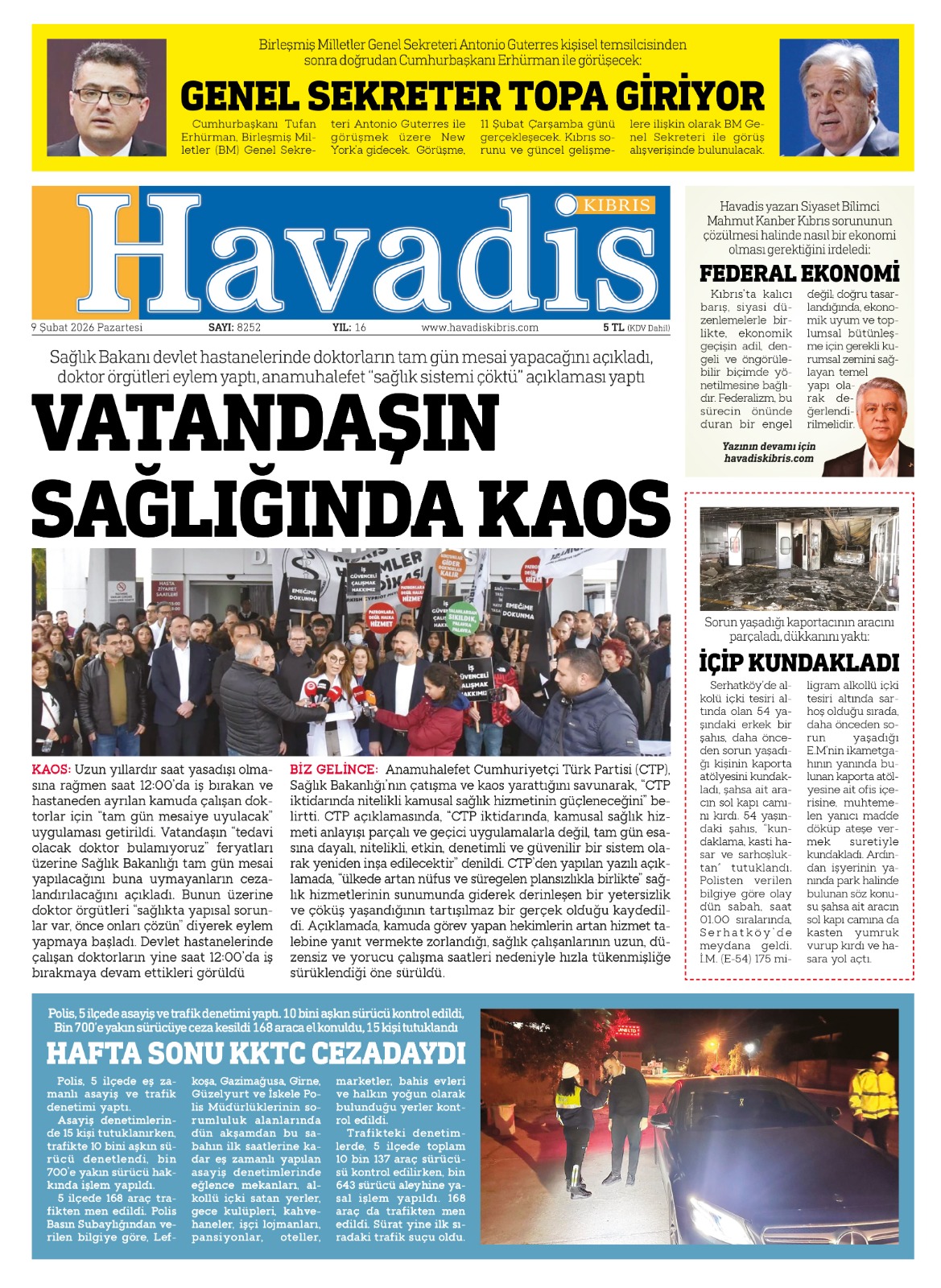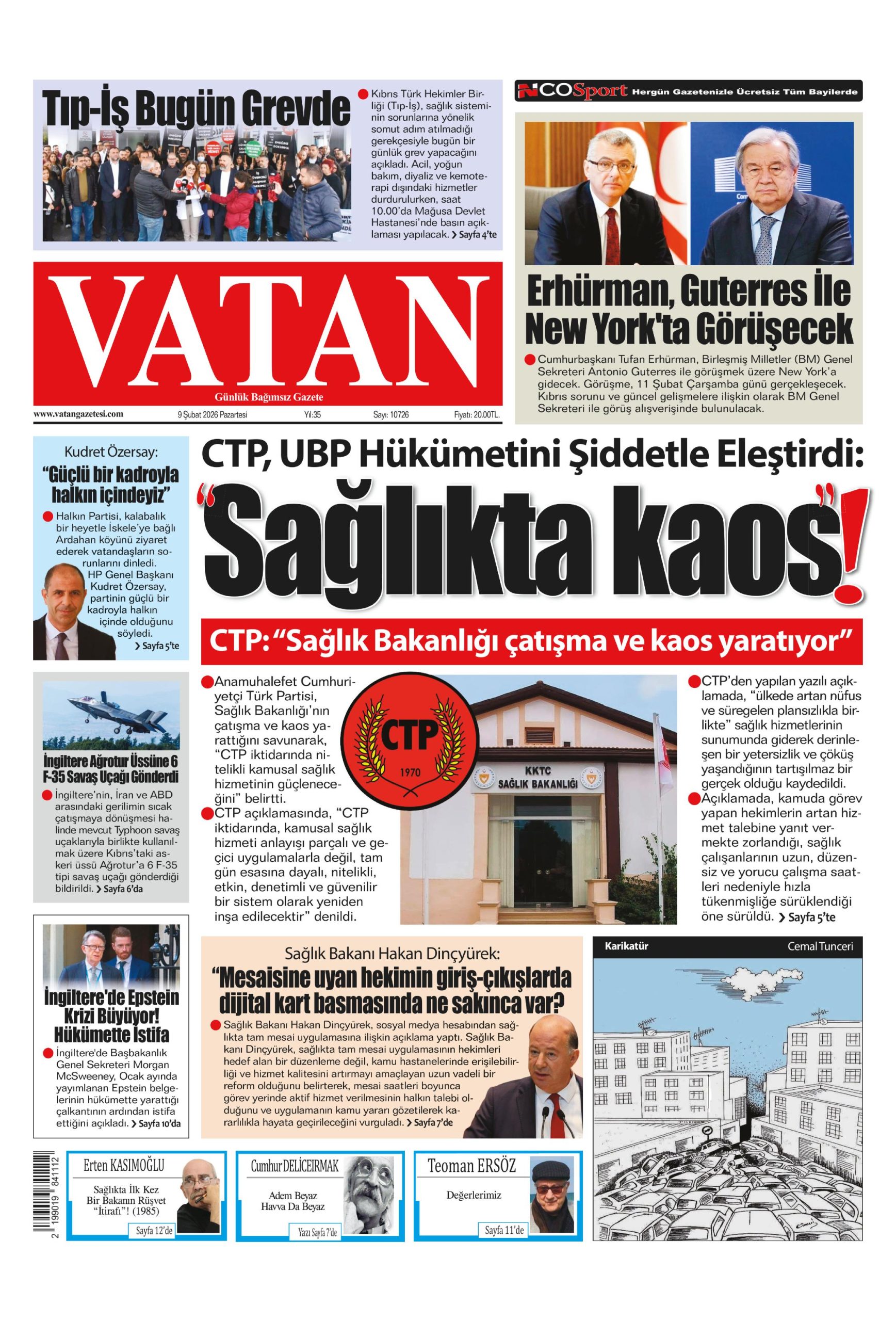 9 Şubat 2026 Pazartesi KKTC Gazete Manşetleri