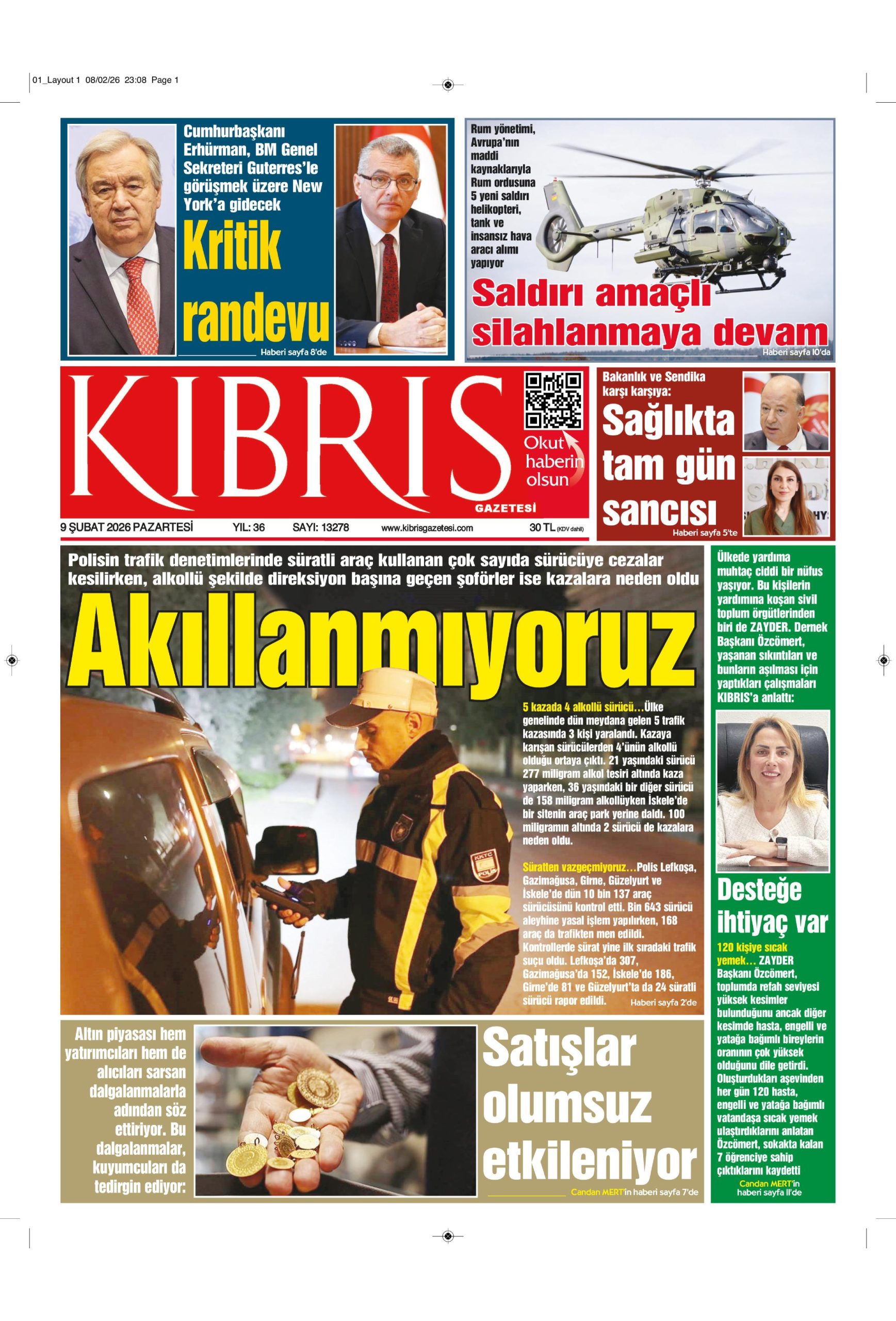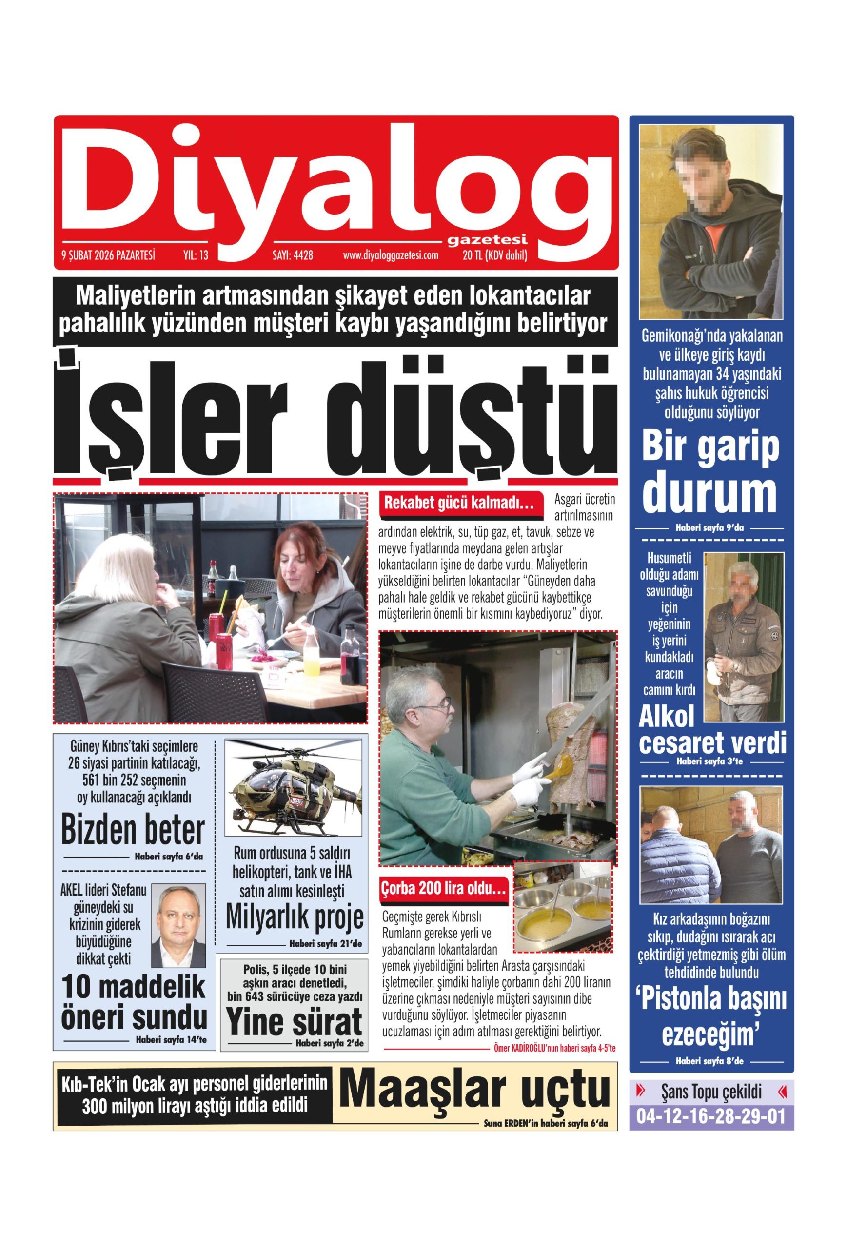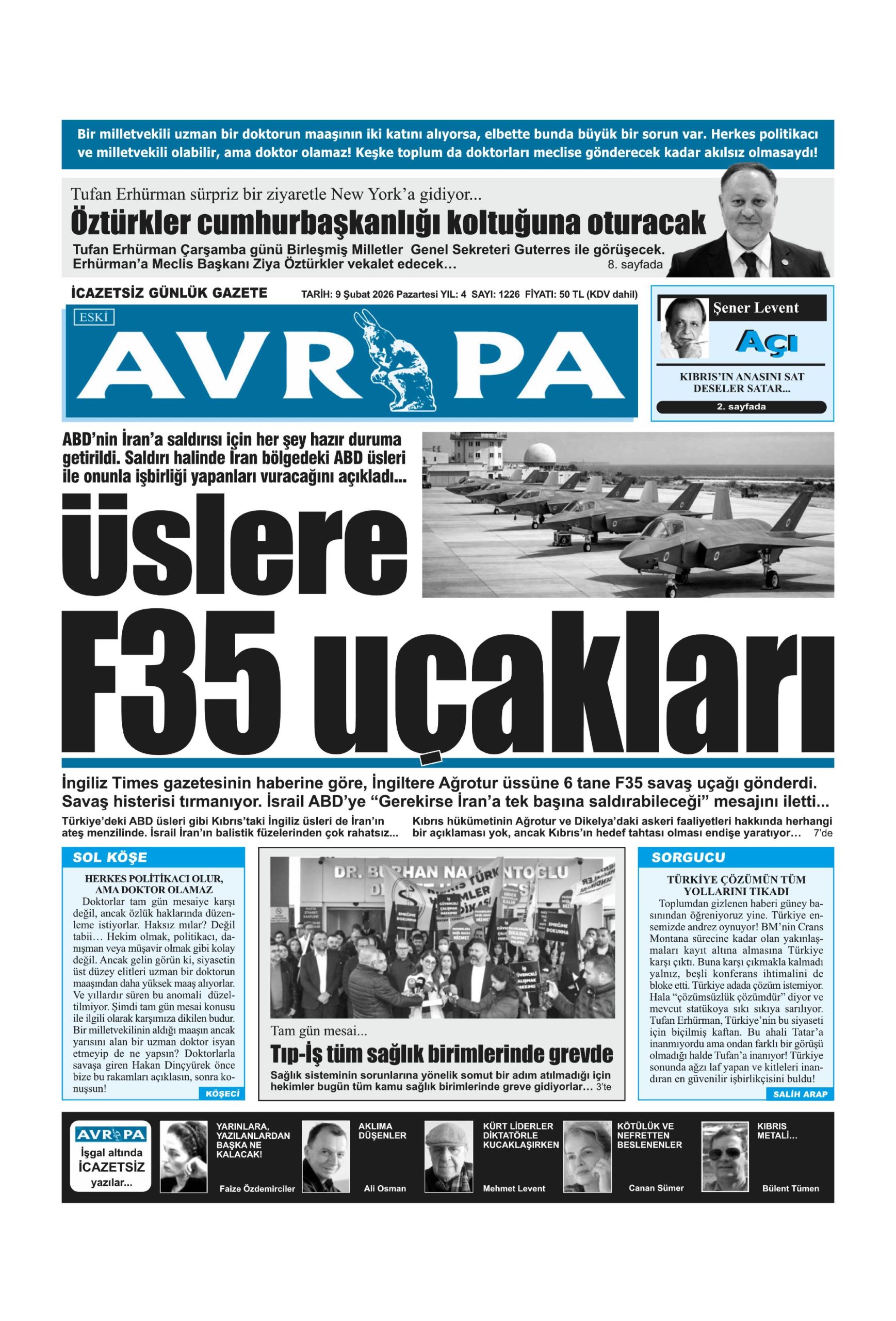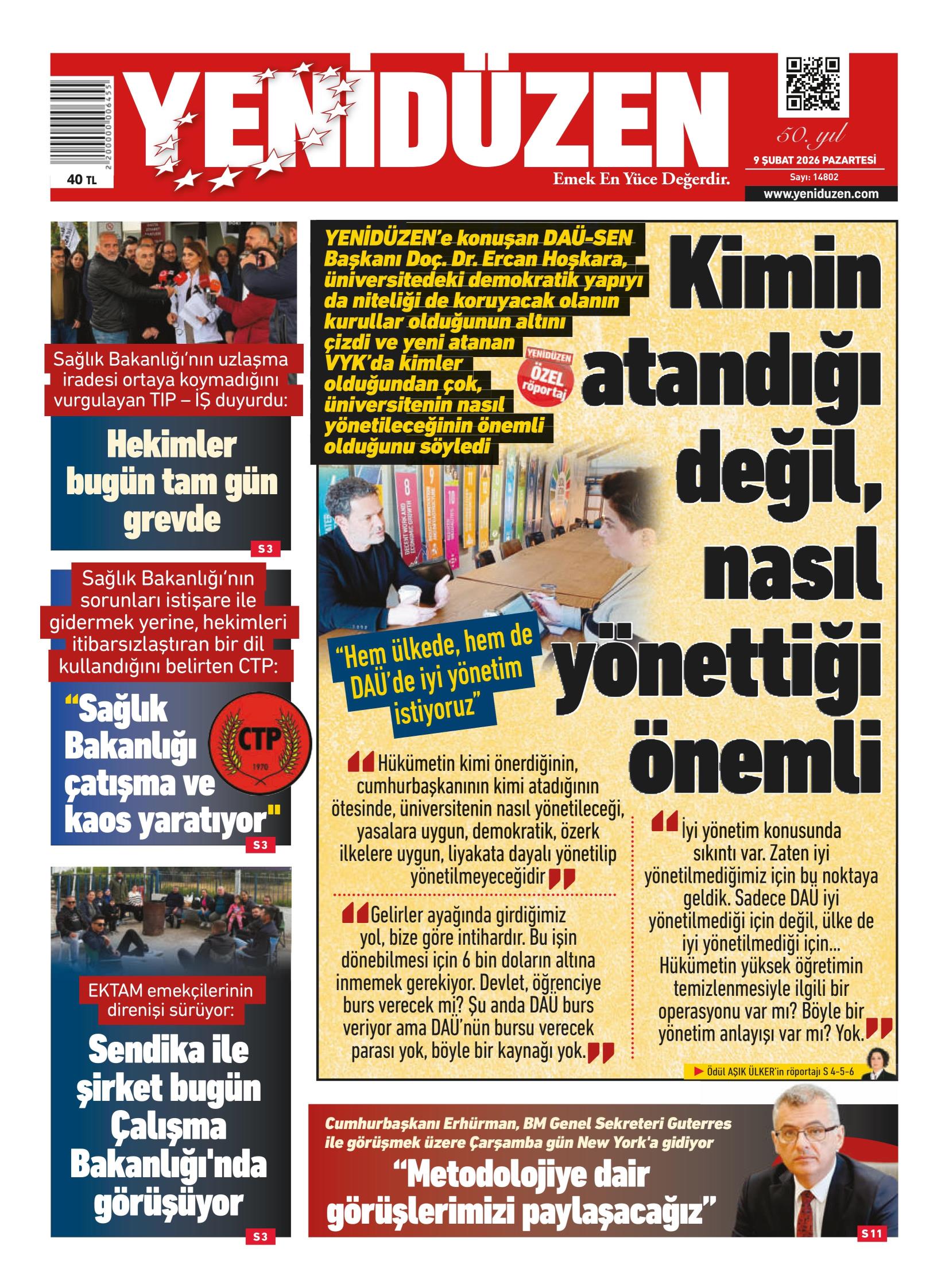 9 Şubat 2026 Pazartesi KKTC Gazete Manşetleri