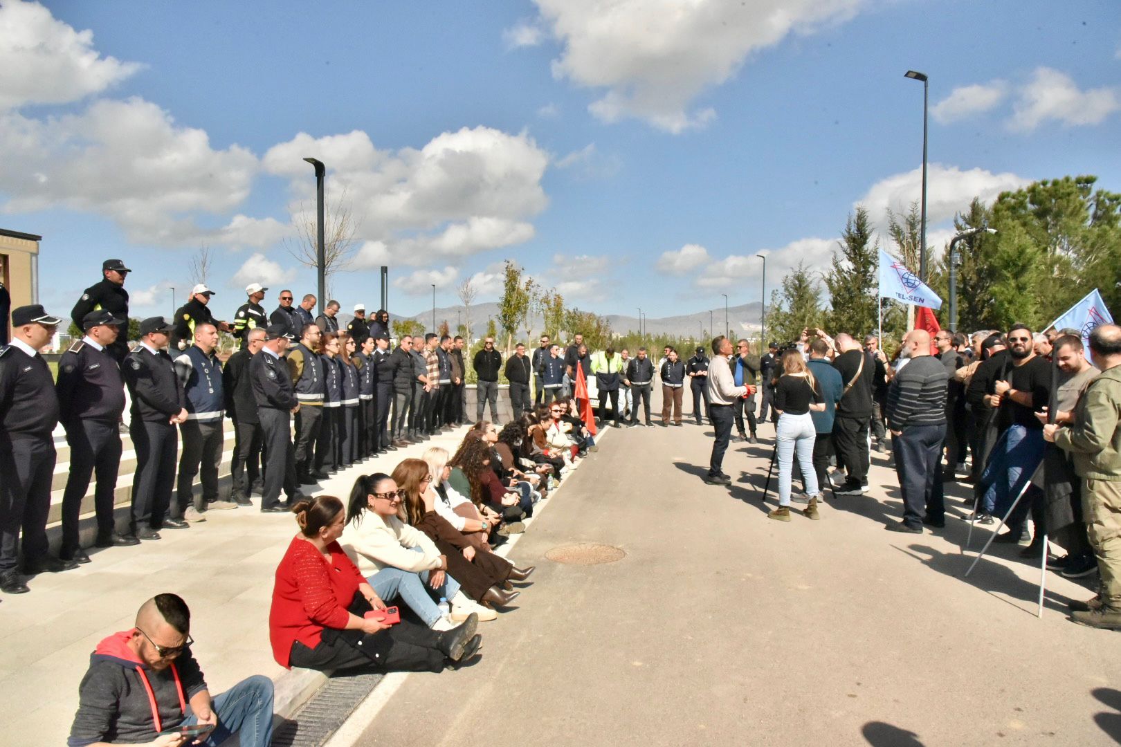 İncirli, Meclis Genel Kurulu devam ederken, dışarıda eylem yapan sendikaların yanına geldi. İncirli’ye CTP Genel Sekreteri Mehmet Kale Kişi ve bazı milletvekilleri de eşlik etti.