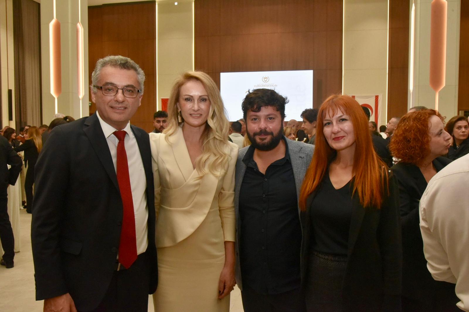 Resepsiyon boyunca Cumhurbaşkanı Erhürman ve eşi, basın mensuplarıyla sohbet etti, fotoğraf çektirdi.