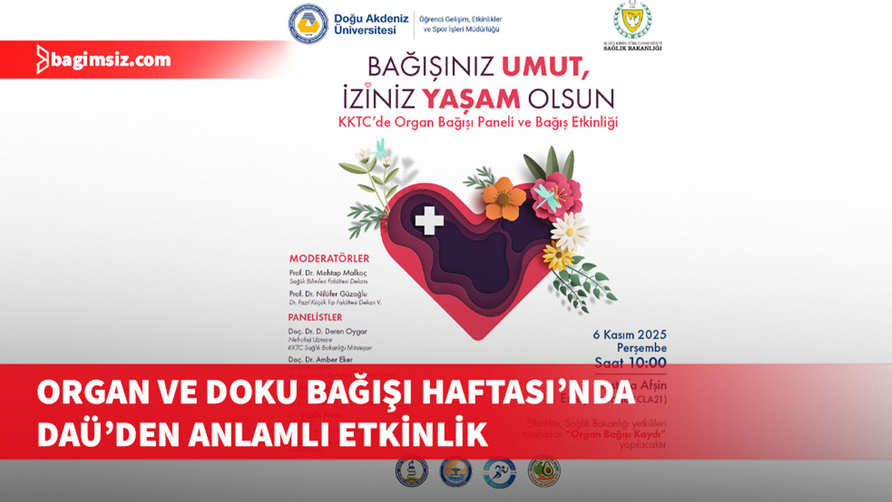 Doğu Akdeniz Üniversitesi’nde (DAÜ), Organ ve Doku Bağışı Haftası kapsamında “KKTC’de Organ Bağışı Paneli ve Bağış Etkinliği” düzenlenecek.