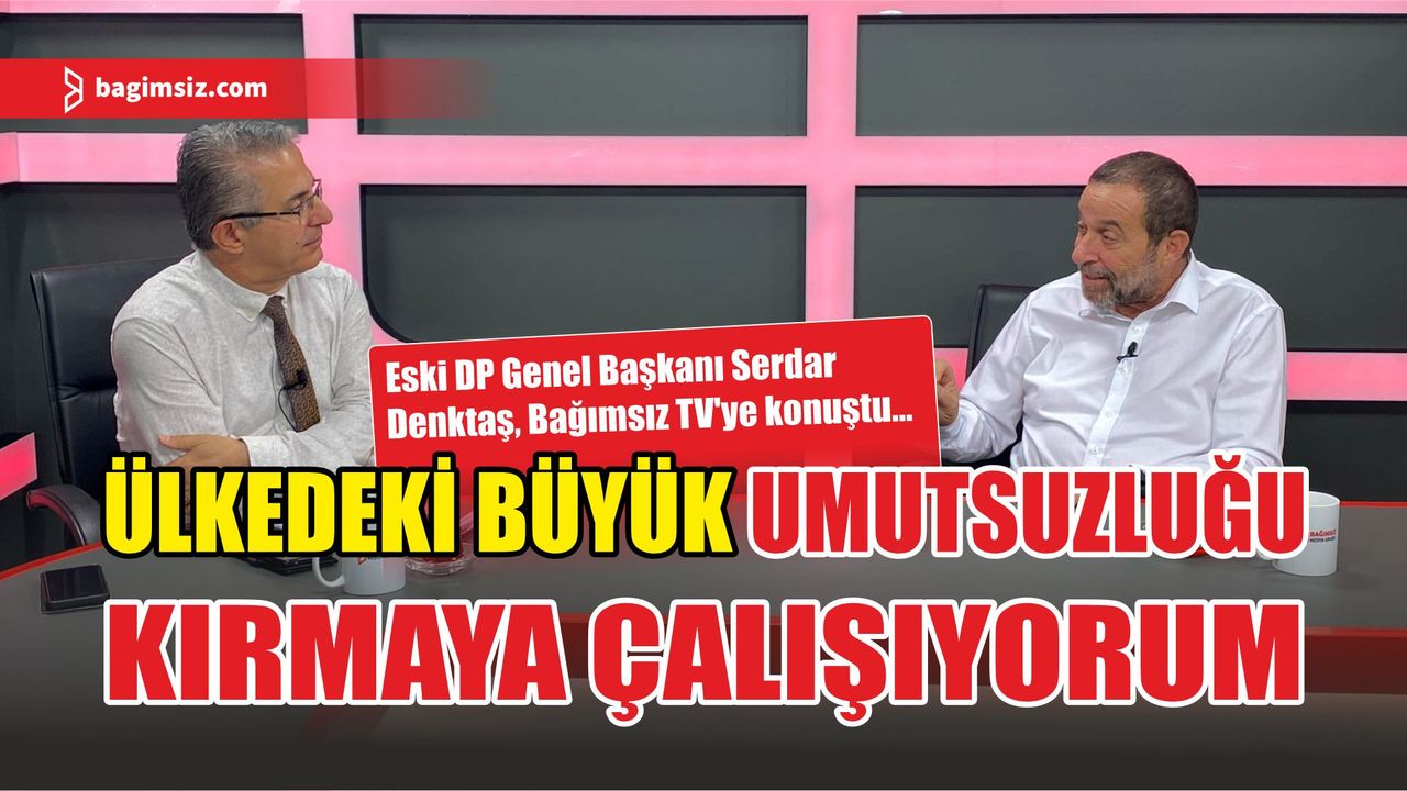 Eski DP Genel Başkanı ve Eski Başbakan Yardımcısı Serdar Denktaş, Bağımsız TV’de “Ali Baturay ile Markaj” programının konuğu oldu. Ülkedeki büyük boşluğun kendisini ses çıkarmaya ve bir farkındalık yaratma konusunda harekete geçirmeye neden olduğunu belirten Denktaş, “Ülkede büyük bir boşluk var. Büyük bir umutsuzluk var. Umutsuzluğun getirdiği umursamazlık var. Bu umutsuzluğu ve umursamazlığı kırabilmek için bir uğraş içindeyim. Vatandaşlardan da çık bir şeyler yap diye telefonlar ve mesajlar alıyorum” dedi.