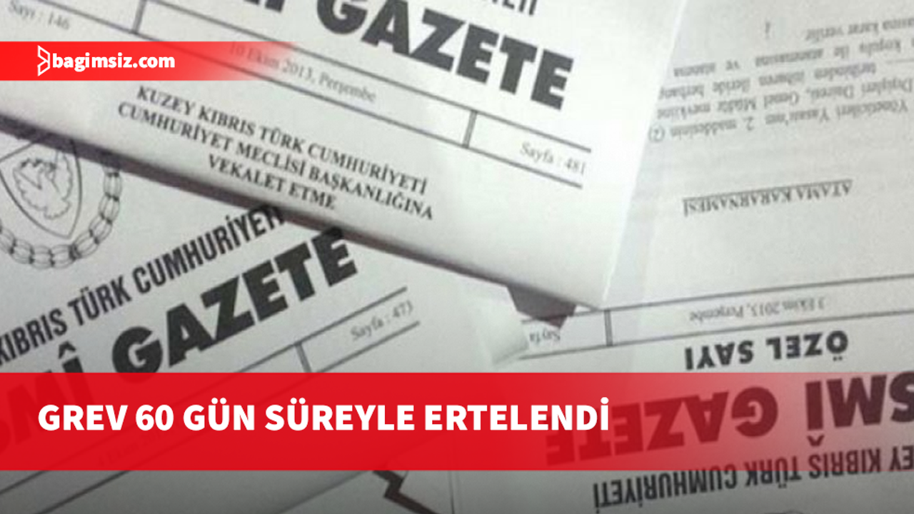 Ercan Havalimanı Hava Trafik Şube Amirliği’nde bugün 08.30-19.00 saatleri arasında yapılacağı duyurulan grev, Bakanlar Kurulu kararı ile 60 gün süreyle ertelendi.