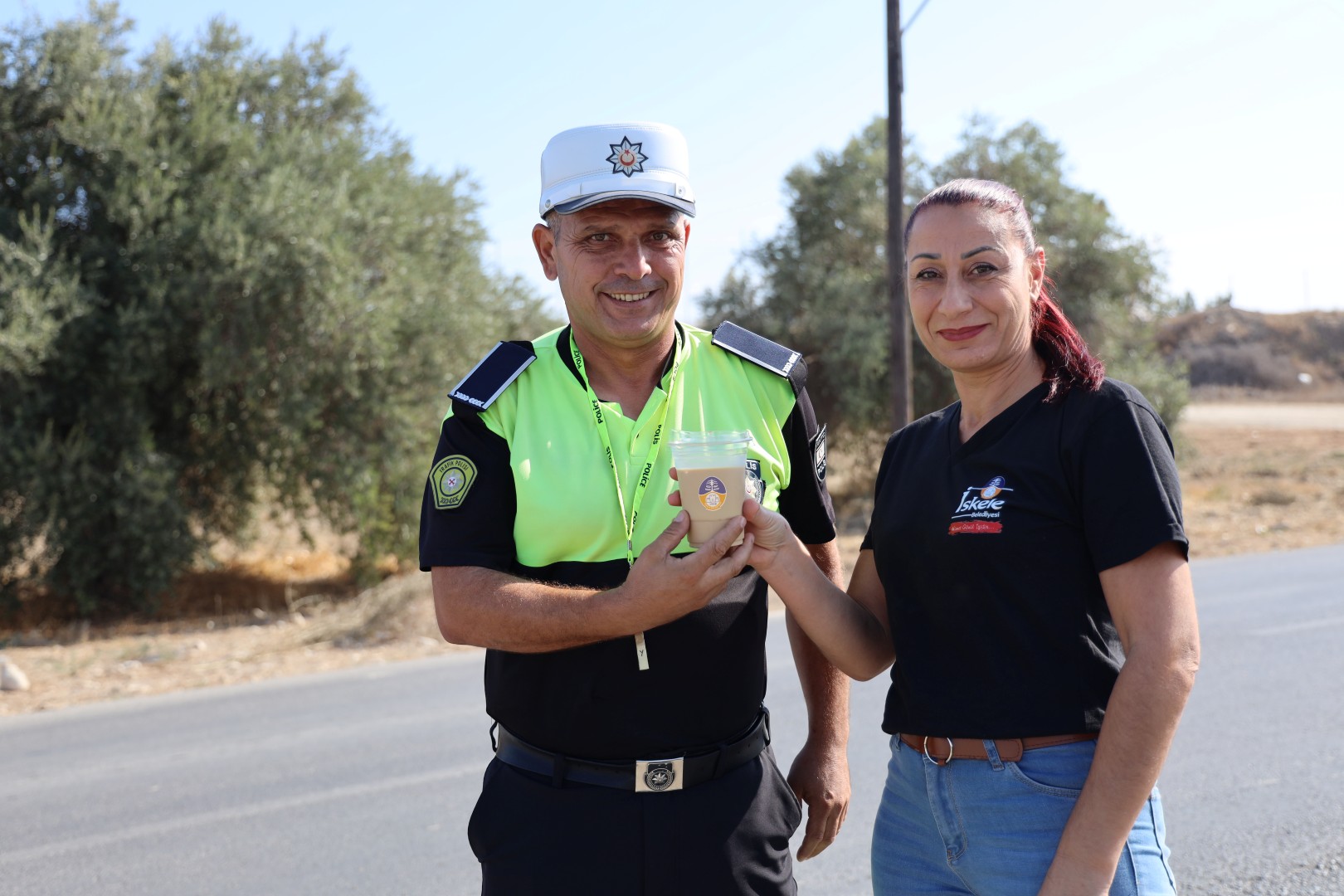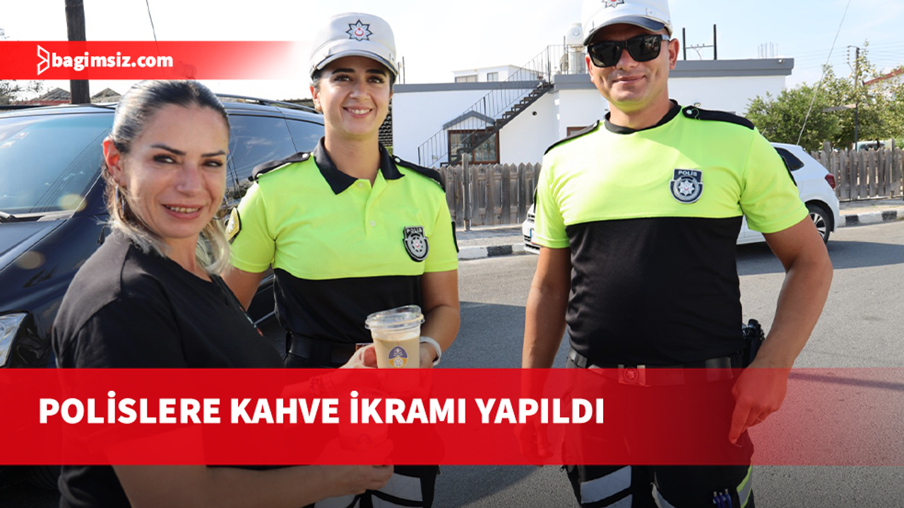 Çocukların emniyetini sağlamak ve okul çevresindeki trafik akışına yardımcı olmak için görev yapan polis memurlarına, İskele Belediyesi ekipleri tarafından sabah ve akşam kahve ikramında bulunuluyor.