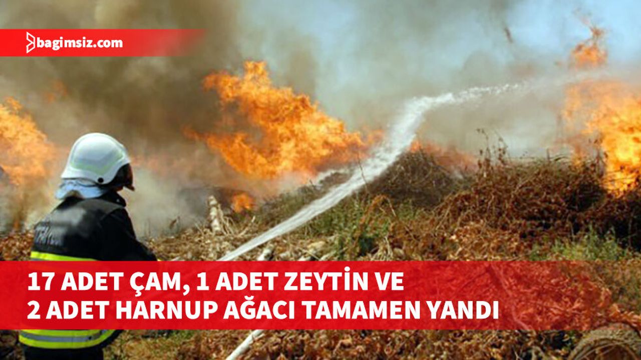 Karaağaç köyünün doğu kısmındaki arazi içerisinde çıkan yangında 17 adet çam, 1 adet zeytin ve 2 adet harnup ağaçları tamamen yandı.