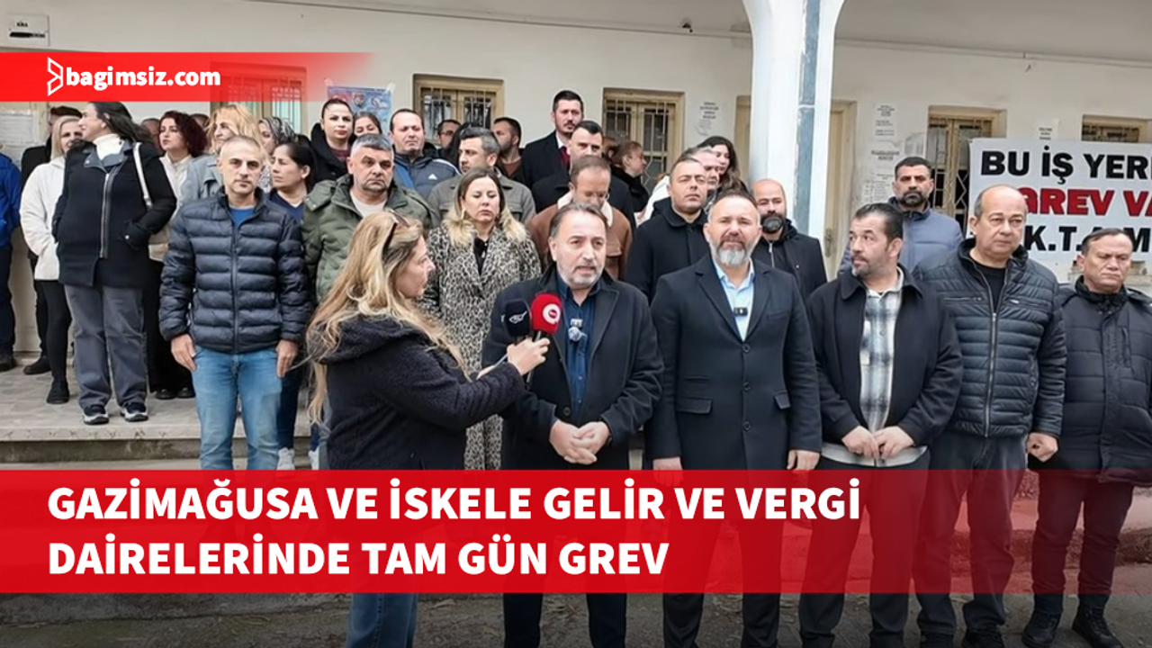 Kıbrıs Türk Kamu Görevlileri Sendikası (KAMUSEN), Kıbrıs Türk Amme Memurları Sendikası (KTAMS) ve Kıbrıs Türk Kamu İşçileri Sendikası (KAMU-İŞ), personel eksikliği, yapısal sorunlar, altyapı yetersizlikleri ve bina işlevselliğine ilişkin sorunlar gerekçesiyle Gazimağusa ile İskele Gelir ve Vergi Dairelerinde bugün tam gün greve gitti.