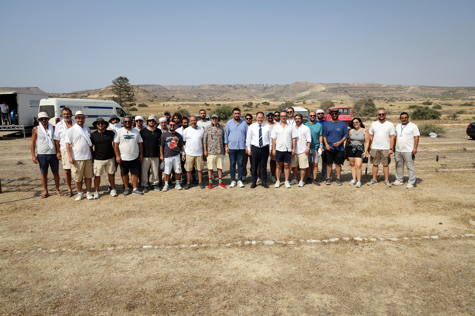 Lacivert Media tarafından çekimlerine 20 Temmuz’da Lefkoşa’da başlanan filmin Güzelyurt Mevlevi bölgesindeki setine giden Öztürkler, burada filmin yapımcısı ve Lacivert Media Direktörü Coşkun Özer ve Yönetmen Özer Feyzioğlu’ndan yapım süreci hakkında bilgi aldı.