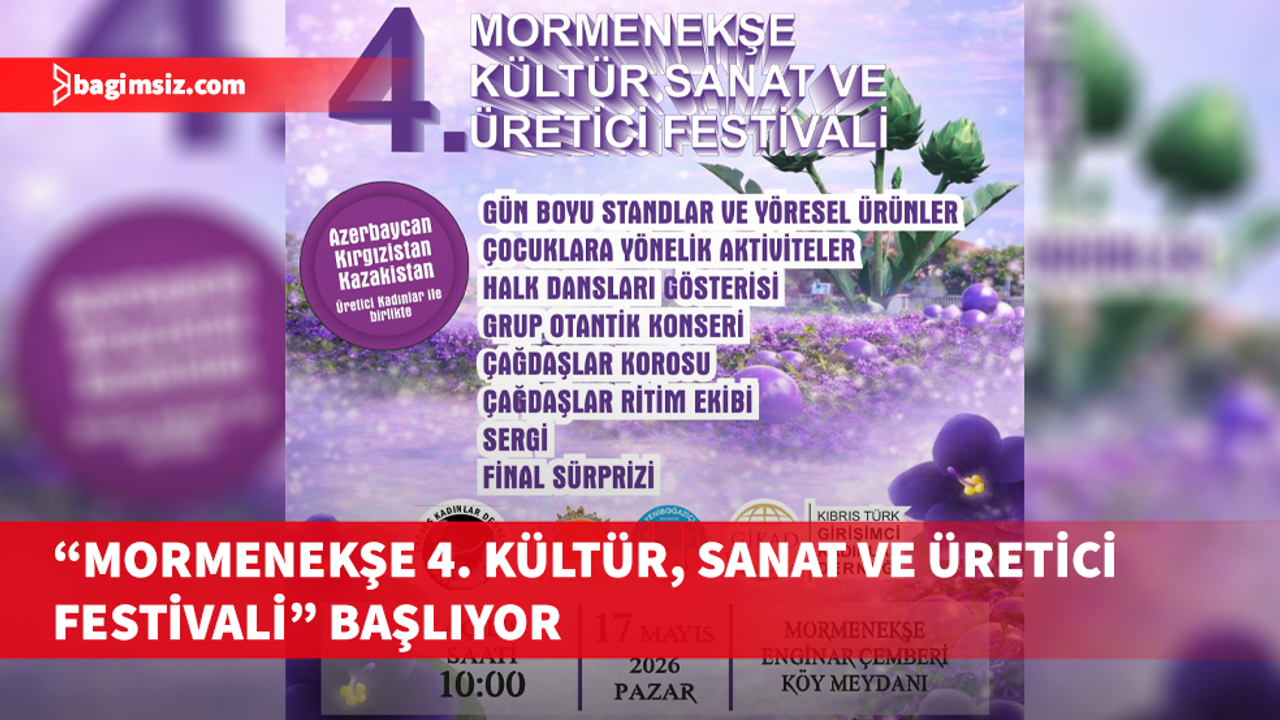 Mormenekşe’de bu yıl dördüncüsü düzenlenecek olan “Mormenekşe 4. Kültür, Sanat ve Üretici Festivali” için geri sayım başladı. Mormenekşe Çağdaş Kadınlar Derneği ile Kıbrıs Türk Girişimci Kadınlar Derneği’nin dayanışmasıyla hayata geçirilen festival, 17 Mayıs Pazar günü Mormenekşe Enginar Çemberi Köy Meydanı’nda gerçekleştirilecek.