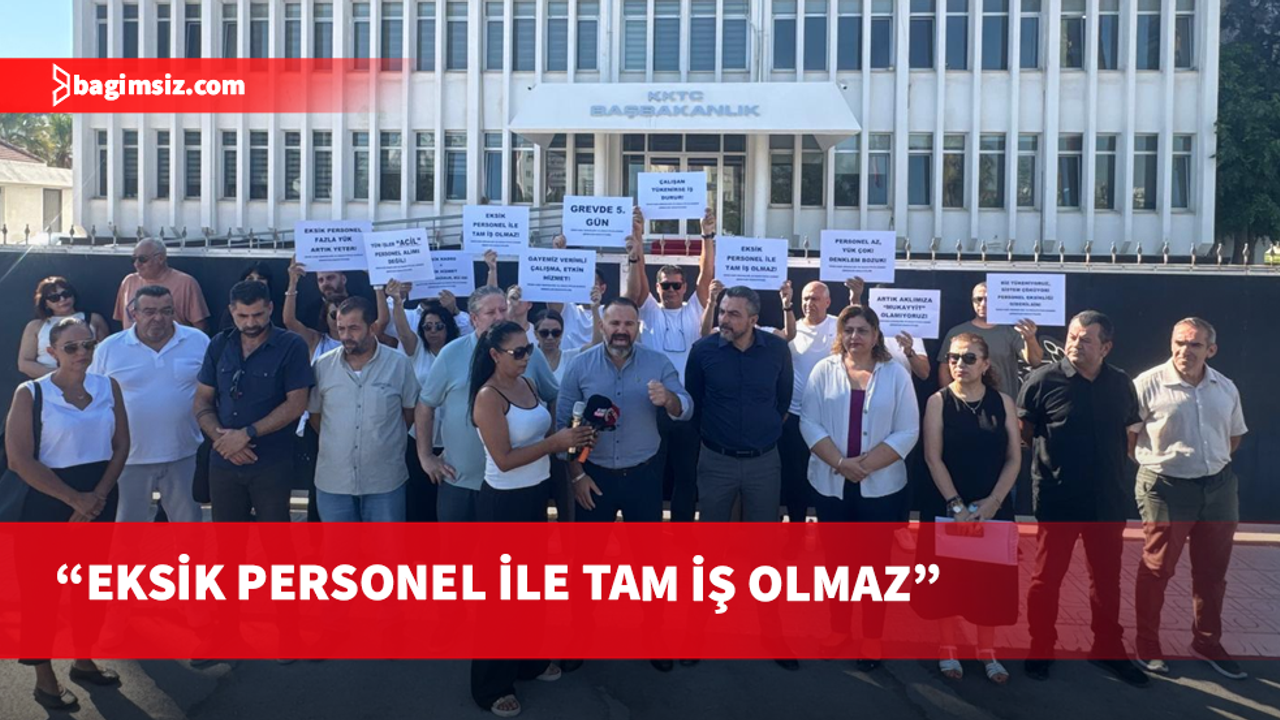Kıbrıs Türk Amme Memurları Sendikası (KTAMS), Kıbrıs Türk Kamu Görevlileri Sendikası (KAMUSEN) ve Kamu İşçileri Sendikası (Kamu-İş), grevin beşinci gününde Başbakanlık önünde açıklama yaptı.