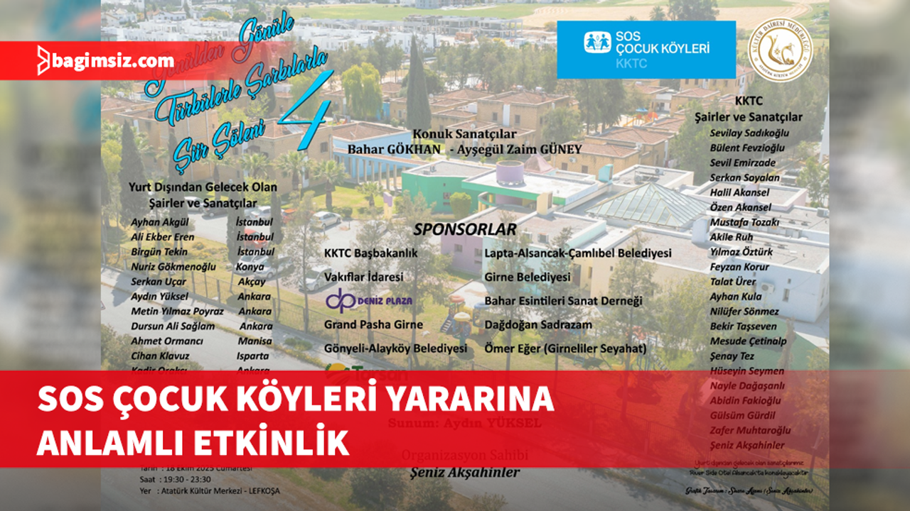 “Gönülden Gönüle Türkülerle Şarkılarla Şiir Şöleni" SOS Çocuk Köyleri yararına 18 Ekim Cumartesi günü düzenlenecek.