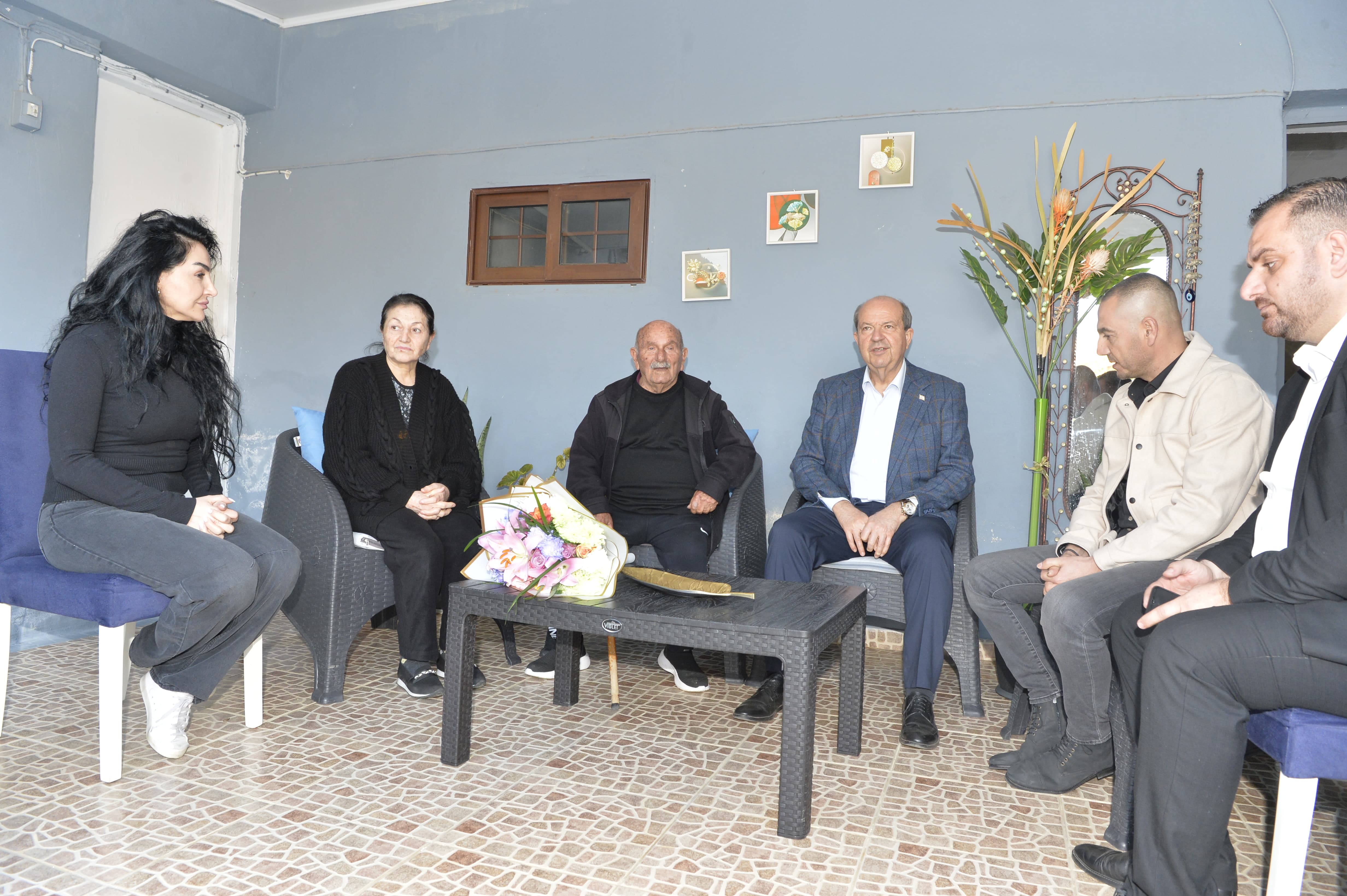 Cumhurbaşkanı Ersin Tatar, Türkiye'de 6 Şubat 2023 tarihinde meydana gelen depremde yaşamını yitiren Güzelyurt bölgesindeki vatandaşların ailelerini ziyaret etti.