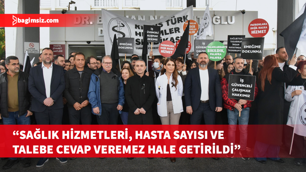 Lefkoşa Burhan Nalbantoğlu Devlet Hastanesi ana binası önünde basın açıklaması gerçekleştiren Tıp-İş’e, Kıbrıs Türk Tabipleri Birliği ile Kıbrıs İşçi ve Emekçi Sendikaları Federasyonu’nun (KİEF) yanı sıra bazı siyasi parti, sendika ve örgütler de destek verdi.